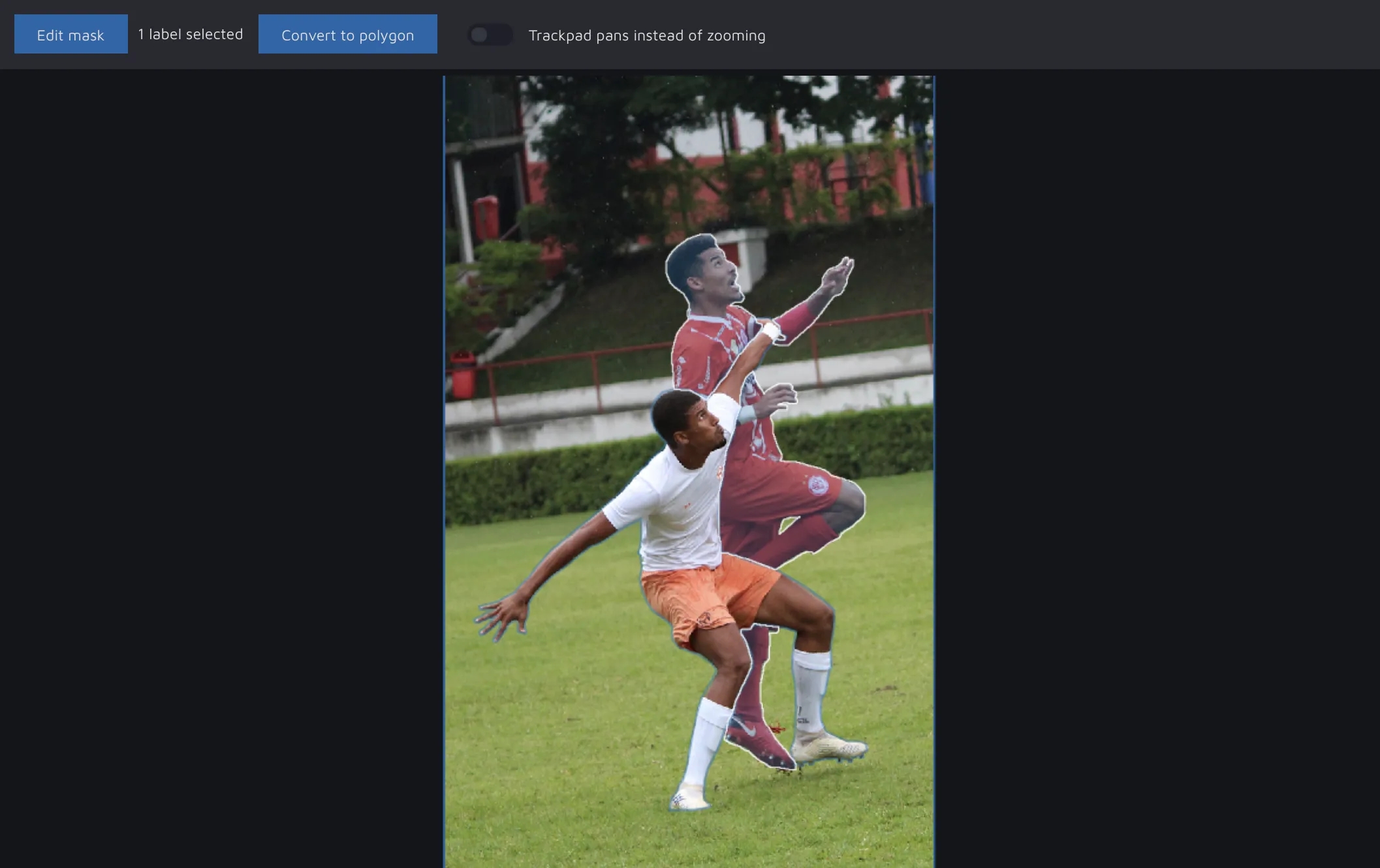 Sometimes you create partial masks or polygons as something in front is "breaking up" the annotation in the background. However, this is less-than-optimal for machine learning networks as it causes confusion. To that, you can either create the background annotation as one uniform annotation using the brush like this: