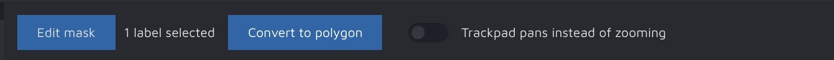 Sometimes, you might want to switch between an annotation from polygon to mask or vice versa. Polygons tend to be easier to edit so if you have an annotation that is in mask-form and you want to edit it, you can convert it by pressing this button: