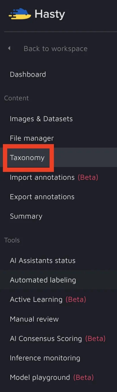 Once you are done, click the save button, and Hasty will save your schema in the project’s taxonomy.