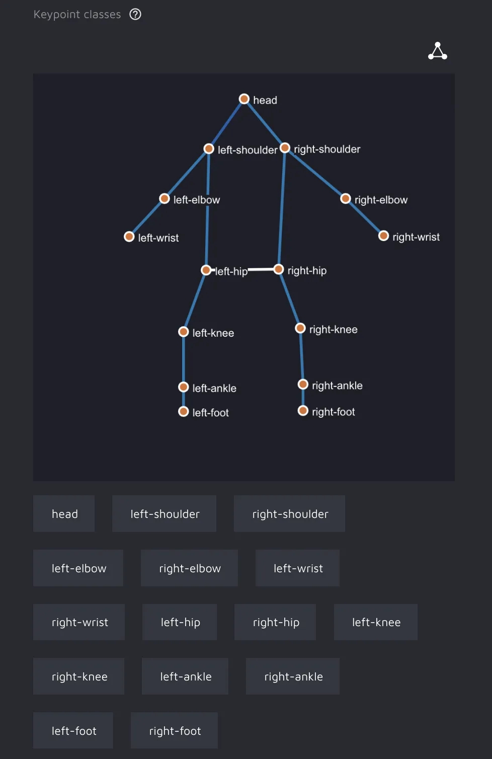 Creating a skeleton is not mandatory - you can save your keypoint schema as soon as you define the keypoint classes. However, if you make a skeleton, Hasty will automatically draw connections between the keypoint in the Annotation Environment during the labeling process.
