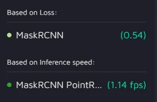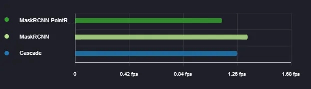 Here you can see the speed with which the models from different experiments make predictions on new data. The inference speed is measured in fps (frames-per-seconds).
