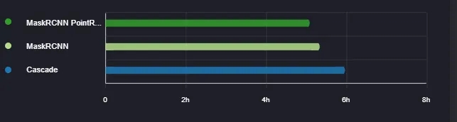 The widget allows you to observe and compare the training time for models from different experiments.