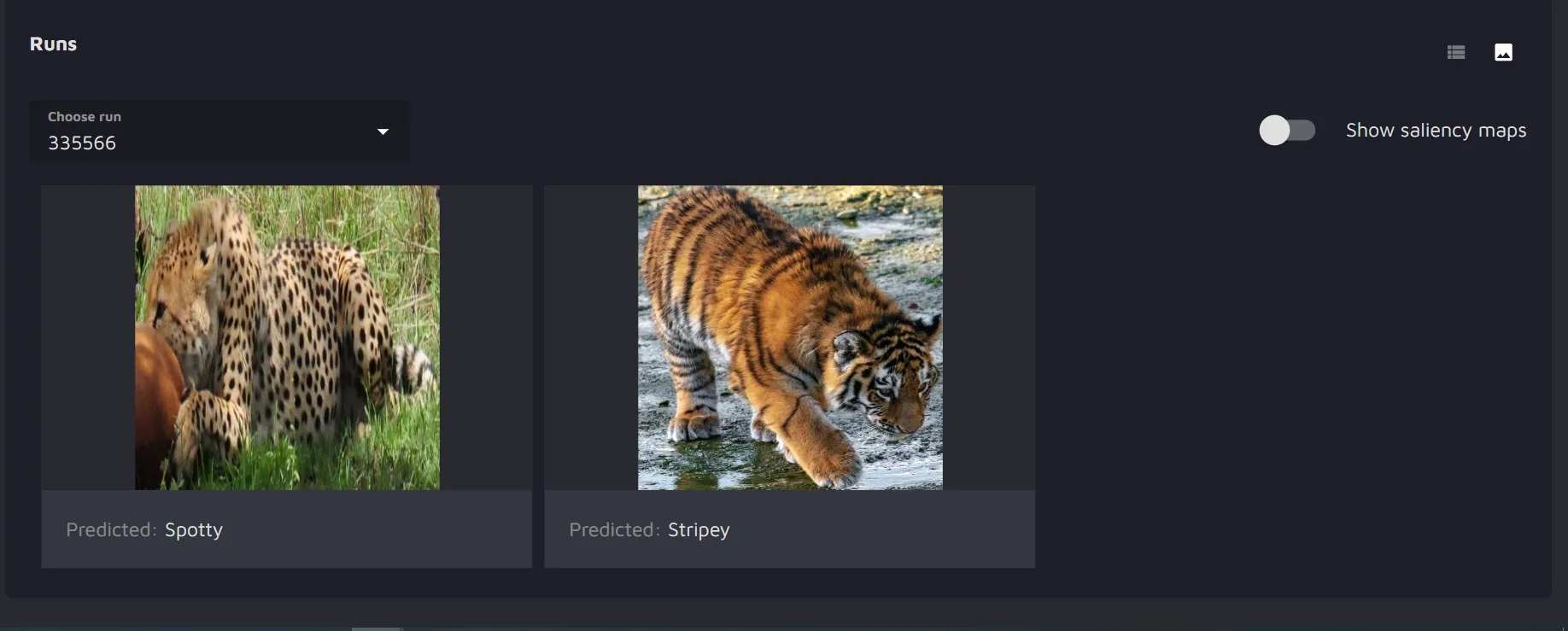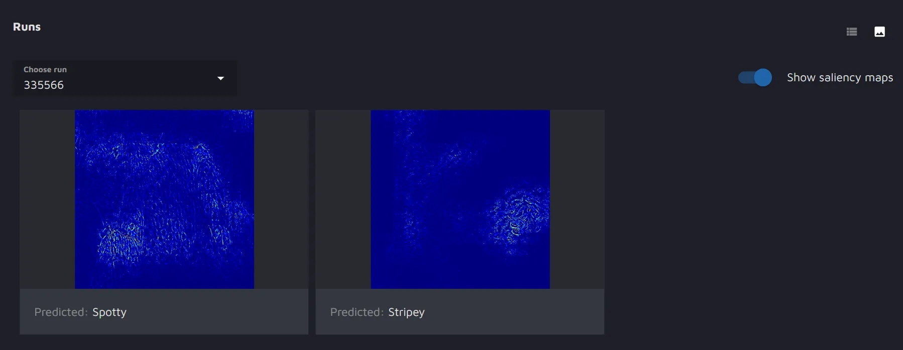 When the run is completed, you will see the results listed as images. You will have the possibility to toggle the saliency map on and off.