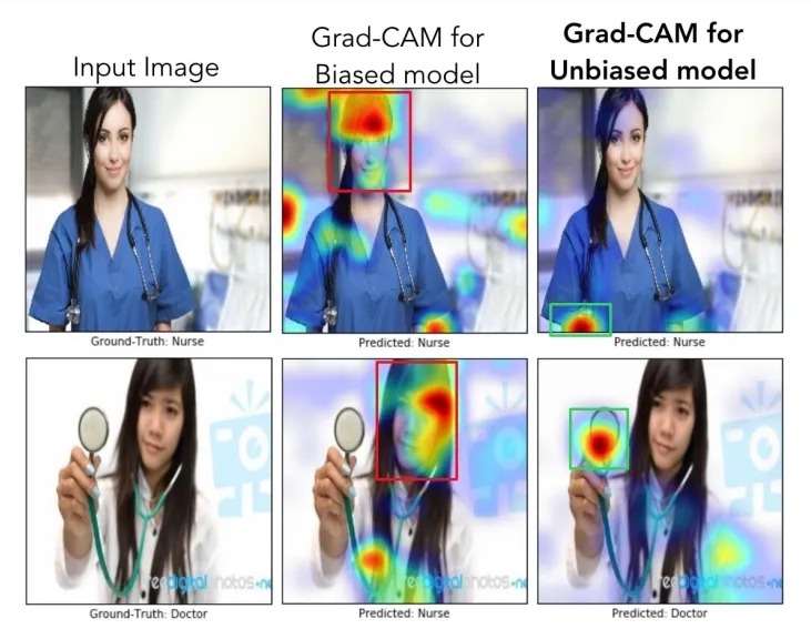 For example, in the case above (the classification of doctors and nurses), the biased model made predictions based mainly on a person’s face and hairstyle. This led to female doctors being misclassified as nurses. In contrast, the unbiased model considered the white coat and the stethoscope as more important features and, therefore, made more correct predictions.