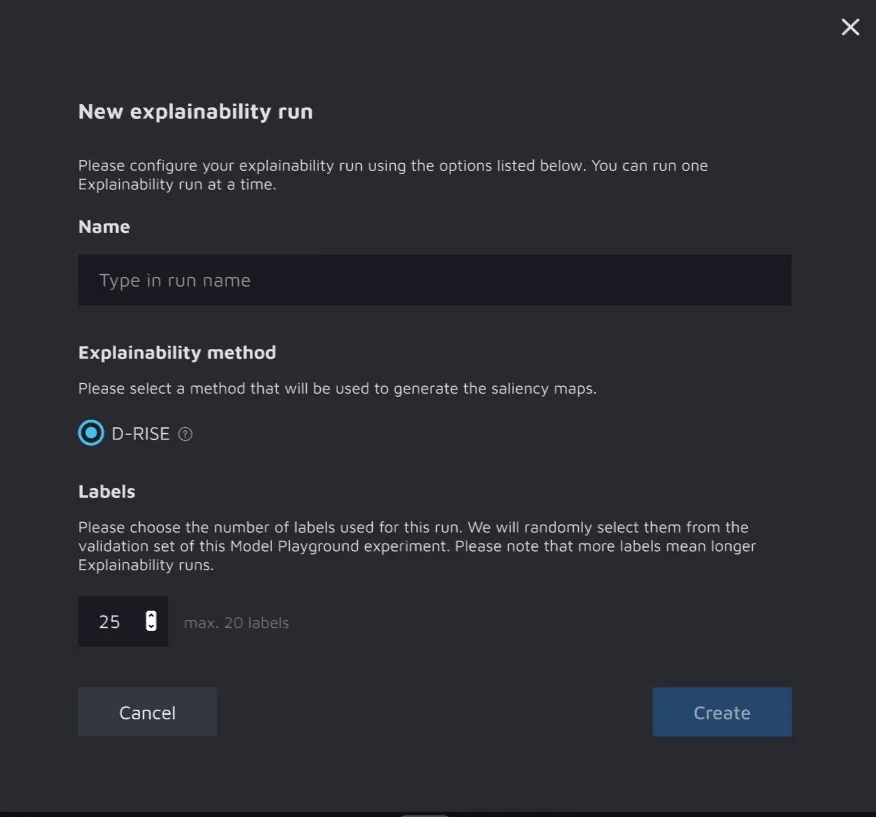 Please note that more images lead to longer Explainability runs.