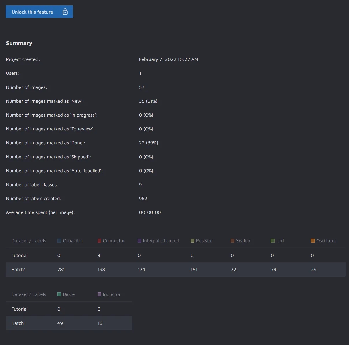 Number of labels created: The total amount of labels/annotations created throughout the project;